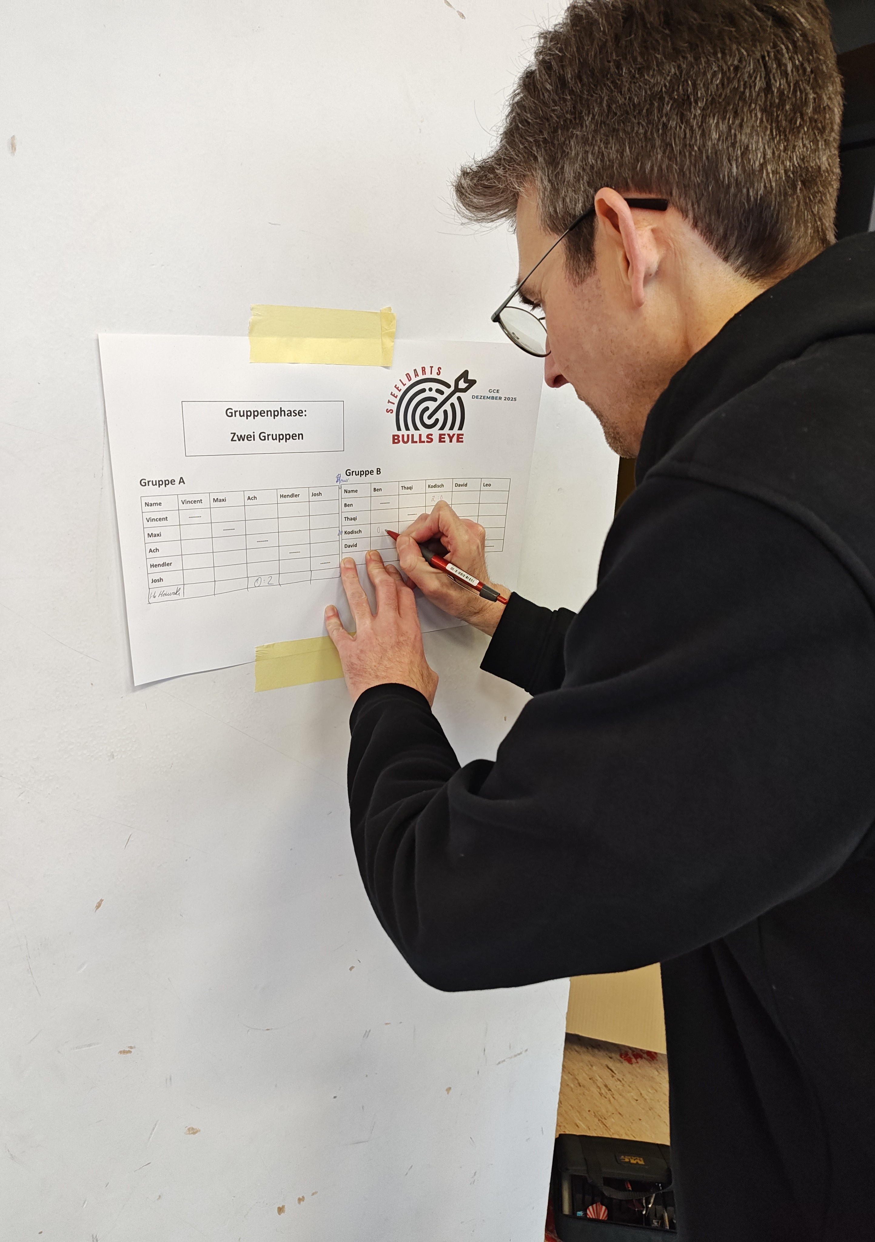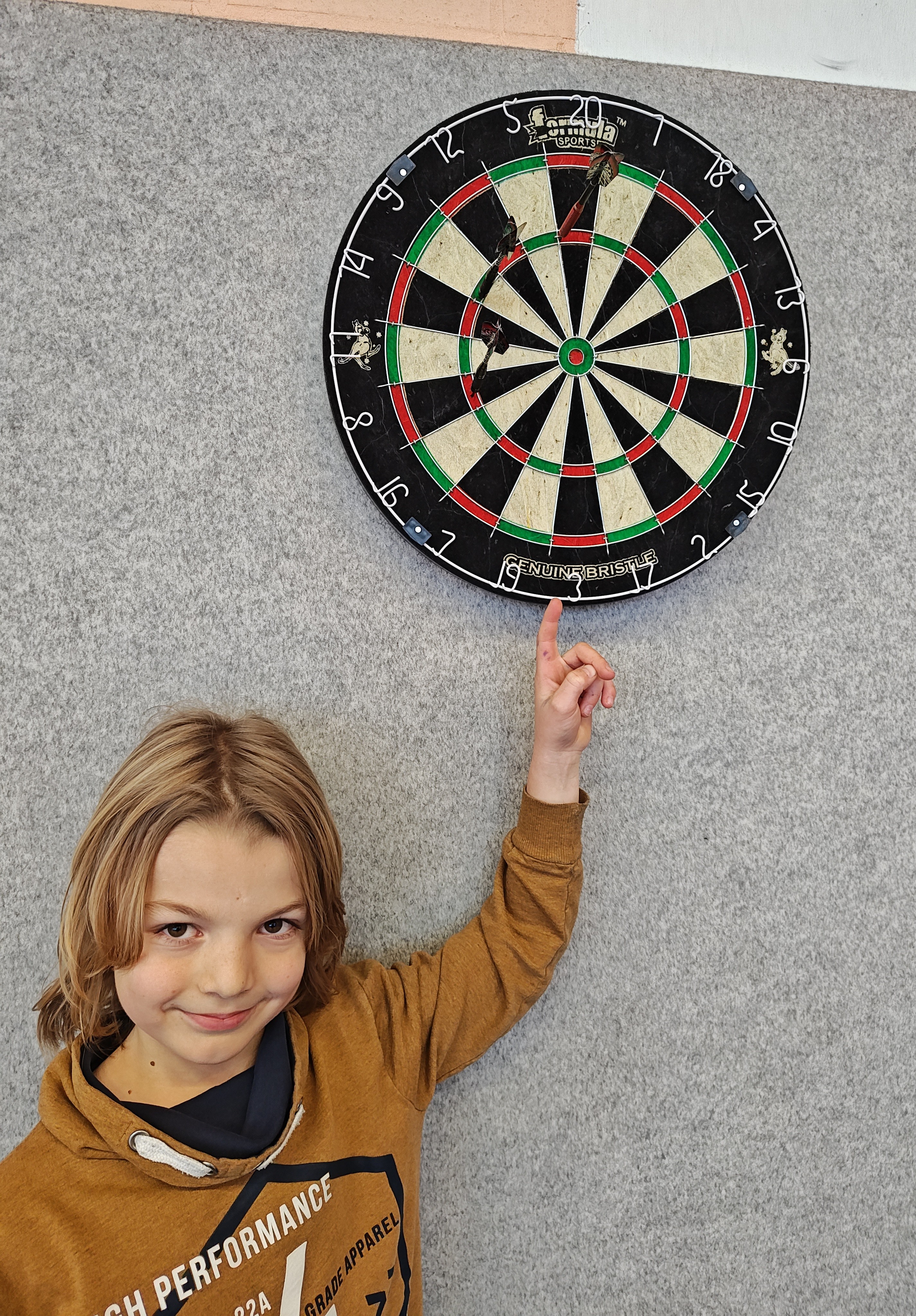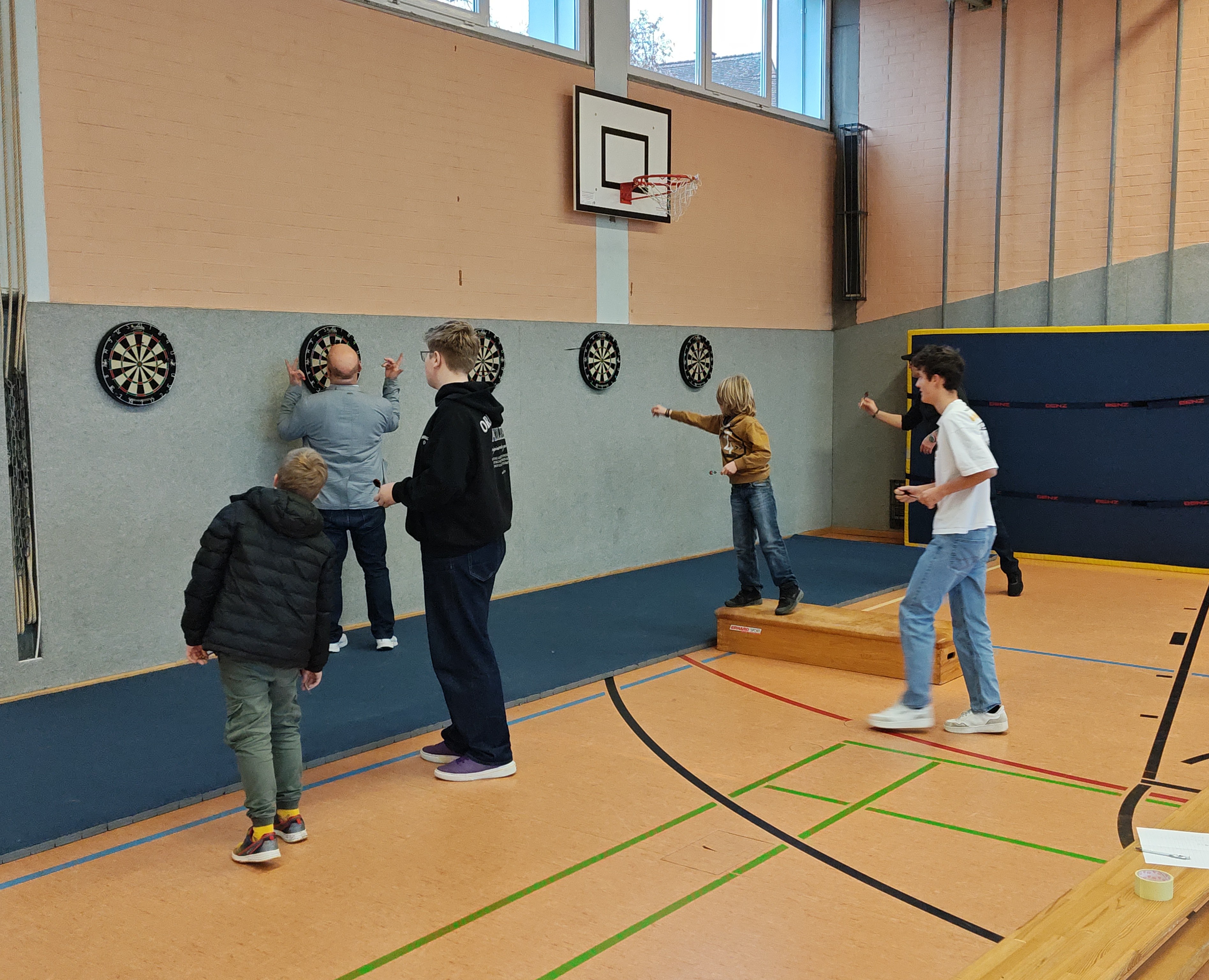 In einem hochklassig besetzten Feld setzte sich Ben  aus der Klasse 10c im Modus „best of 3 legs“ gegen seine Konkurrenten aus Schüler- und Lehrerschaft durch und konnte den Siegernikolaus stolz in die Höhe  halten.
