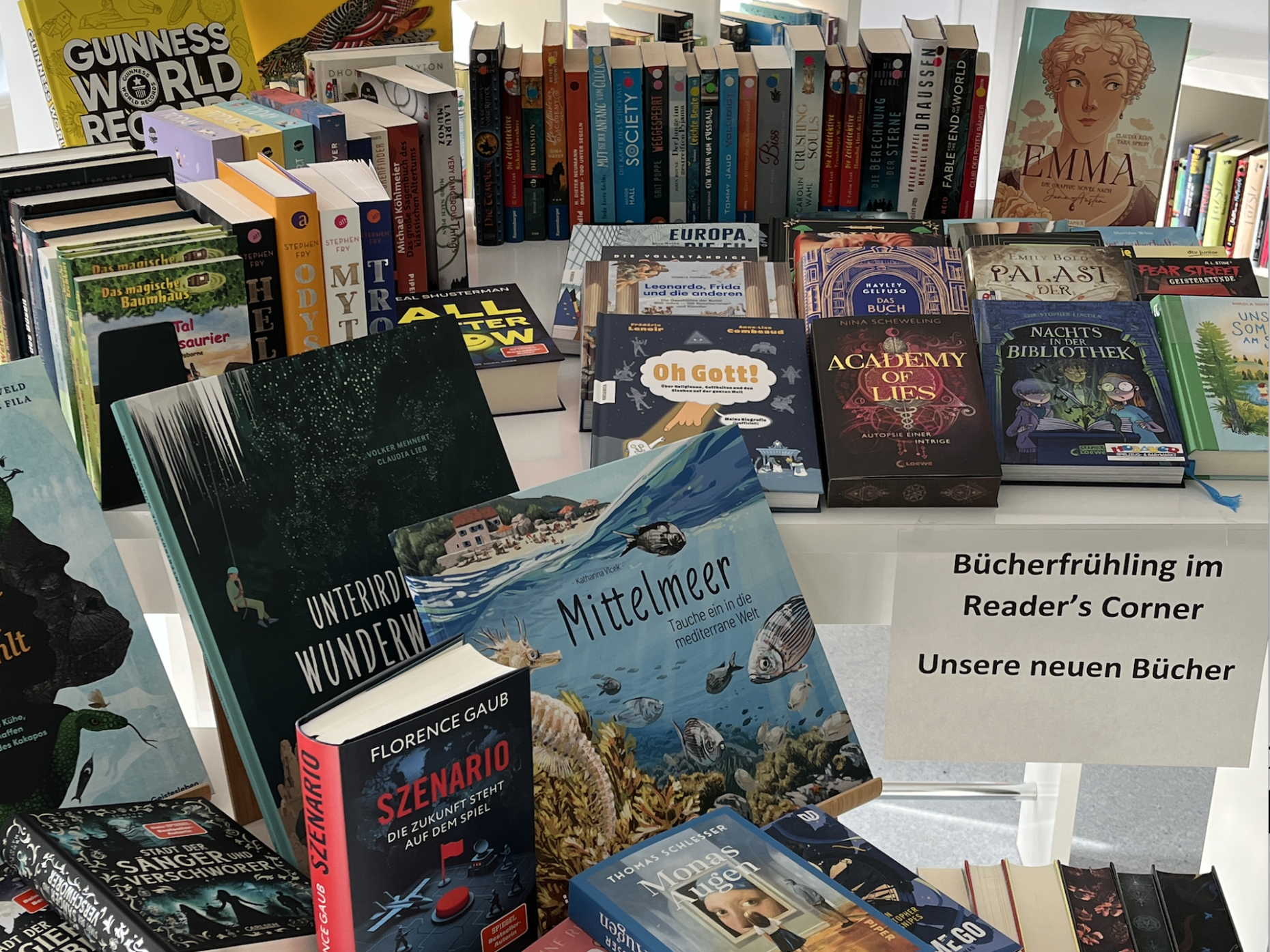 Das Reader’s Corner ist in jeder Pause geöffnet und bietet die Möglichkeit, Bücher auch über die Ferien zu leihen.