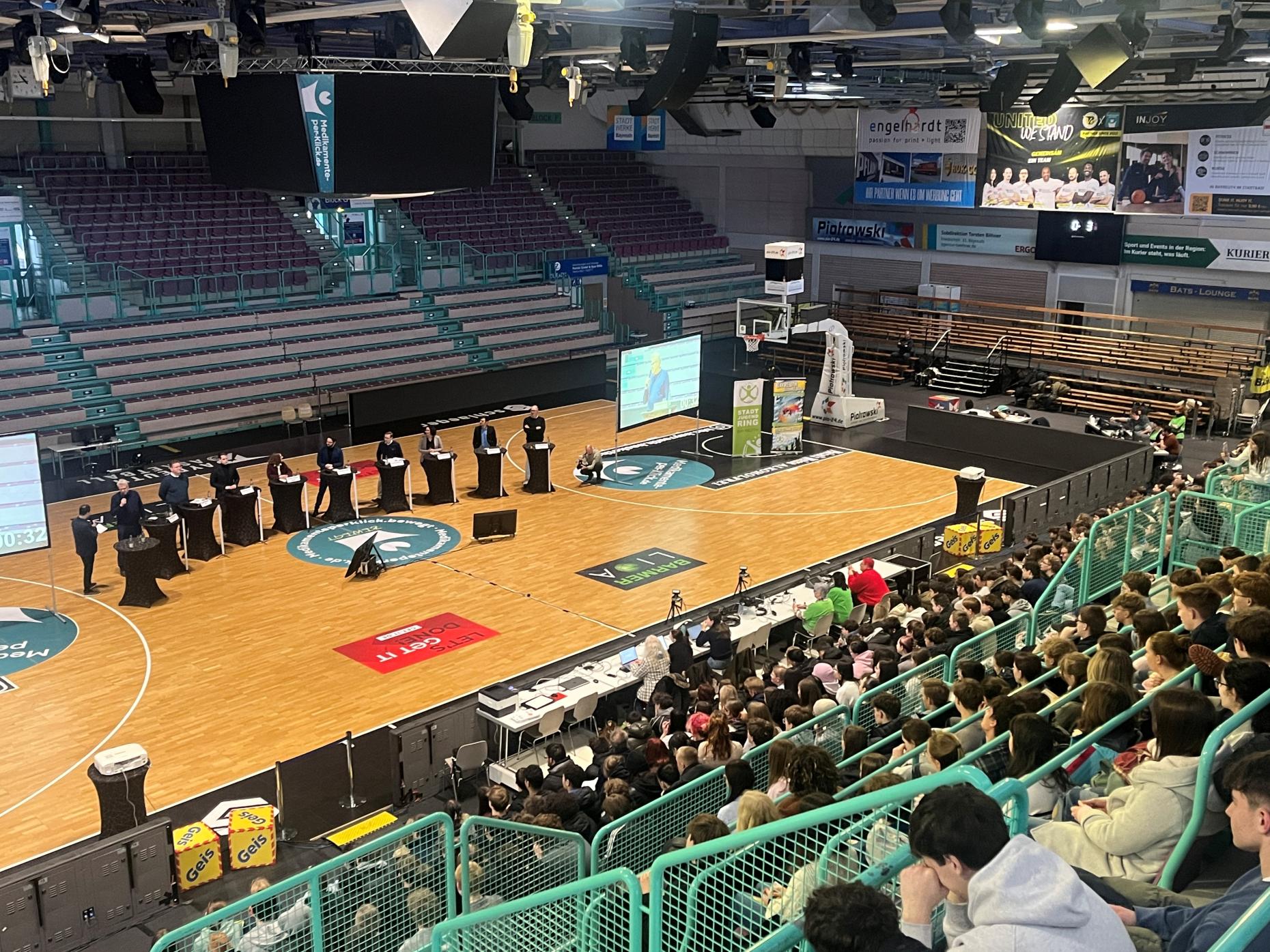Im Rahmen der Demokratieerziehung am GCE besuchten die 10. und 11. Jahrgangsstufen die Podiumsdiskussion der Kandidaten für die Wahl des Oberbürgermeisters in der Oberfrankenhalle.