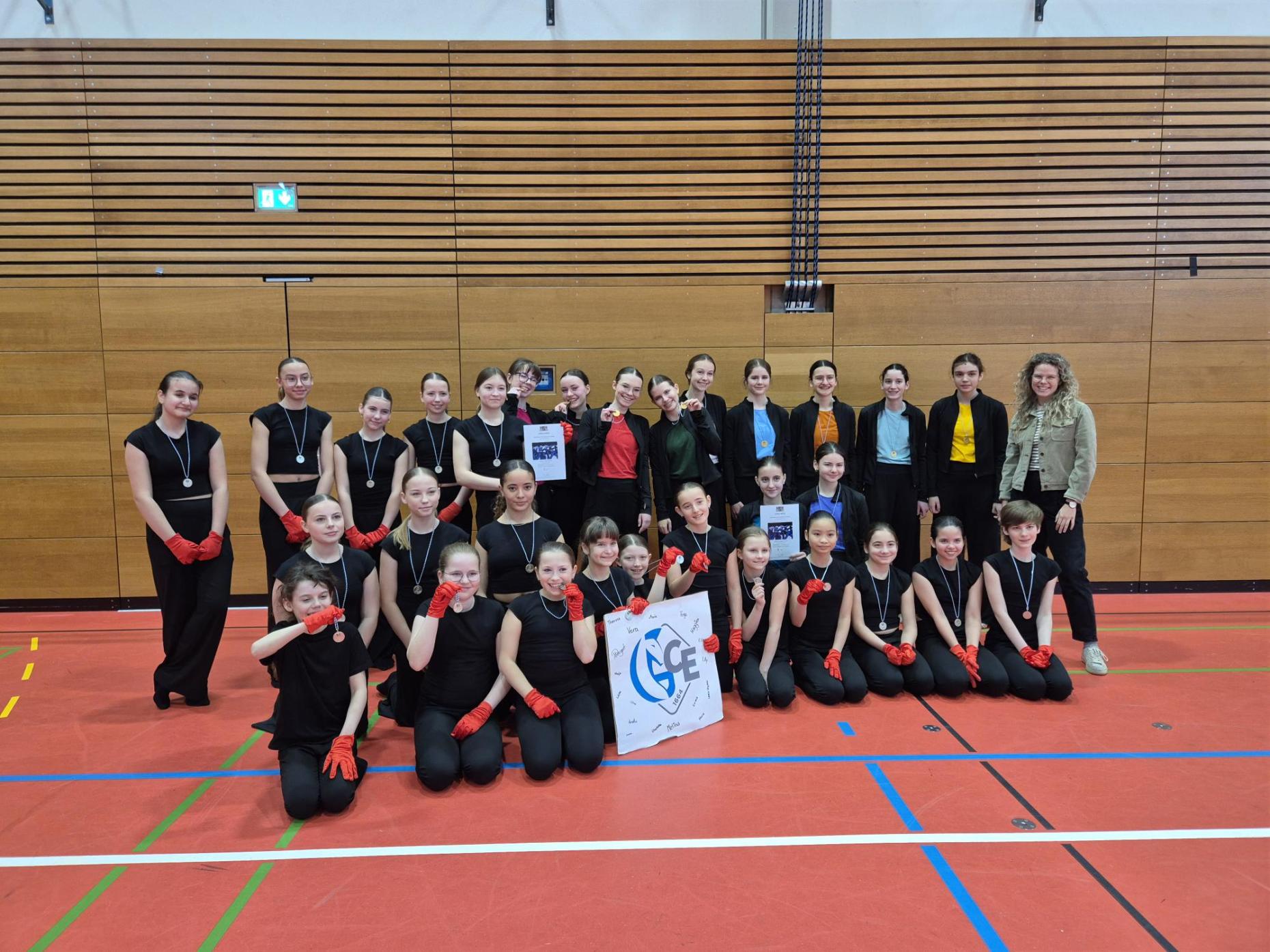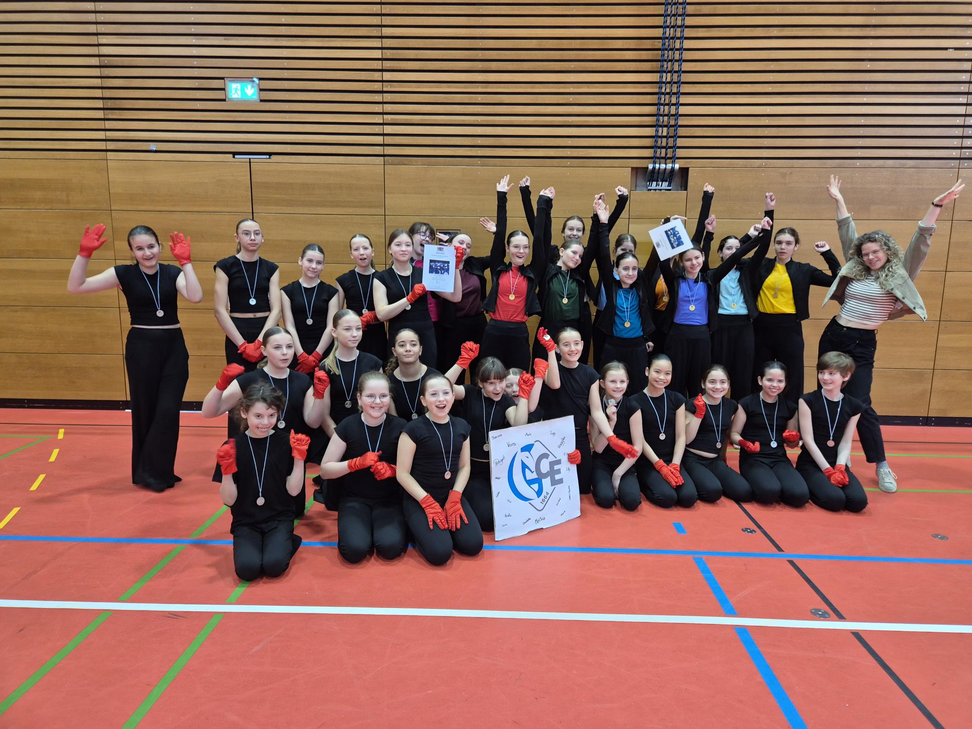 Das Bezirksfinale Tanz fand in diesem Jahr am 24.03.2026 statt, und wurde wieder in der Turnhalle am roten Main in Bayreuth ausgetragen. Das GCE war erneut mit zwei Mannschaften bestehend aus insgesamt 30 Tänzerinnen und erstmalig auch 2 Tänzern am Start. Bei diesem Heimspiel in der Turnhalle zeigten die beiden AGs, worauf sie sich in diesem Schuljahr lang und intensiv vorbereitet hatten.