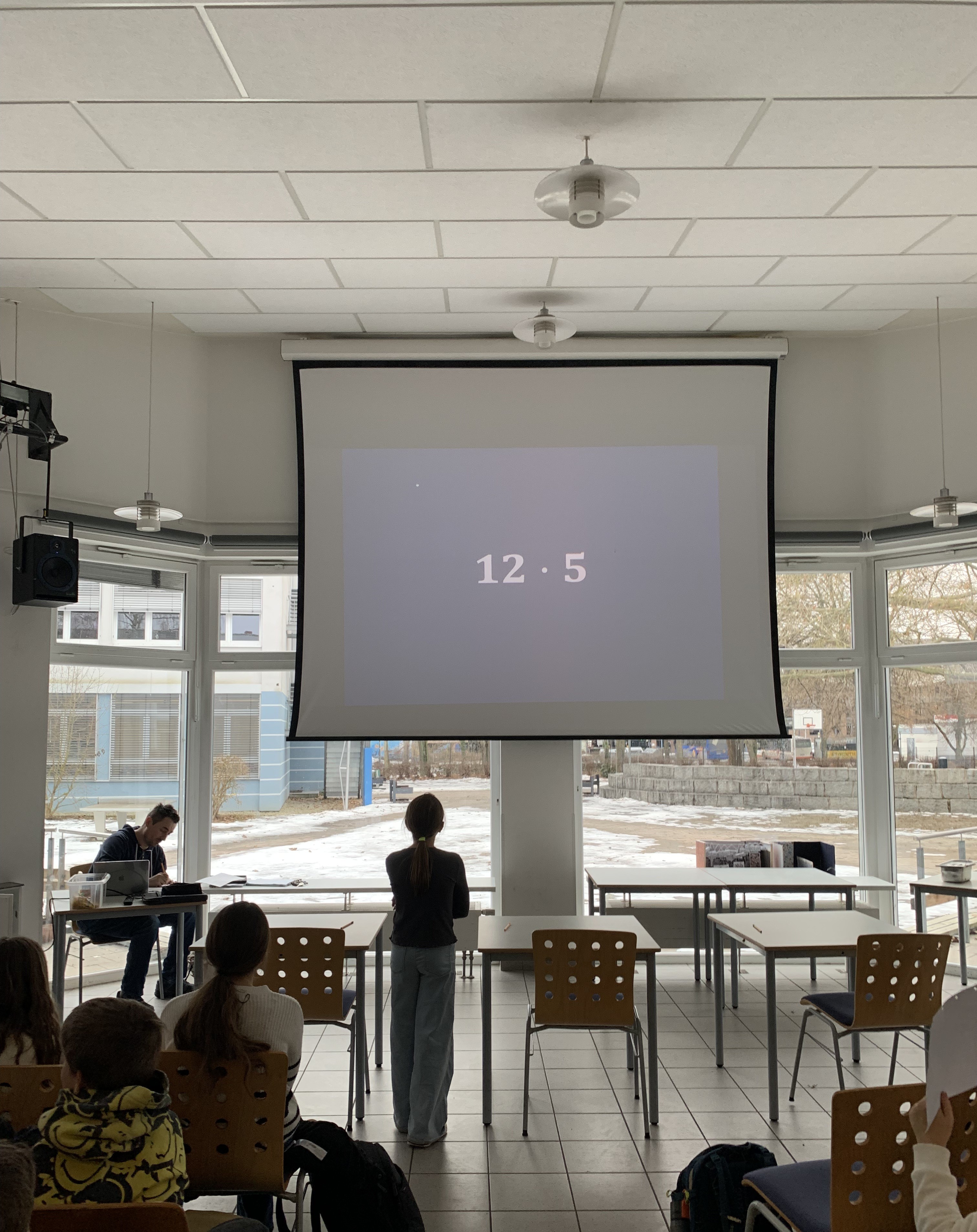 Alle Fünftklässler waren als Zuschauer eingeladen und erlebten ein spannendes Event, bei dem die besten zwei Kopfrechner jeder Klasse gegeneinander antraten, um ihr mathematisches Können unter Beweis zu stellen.