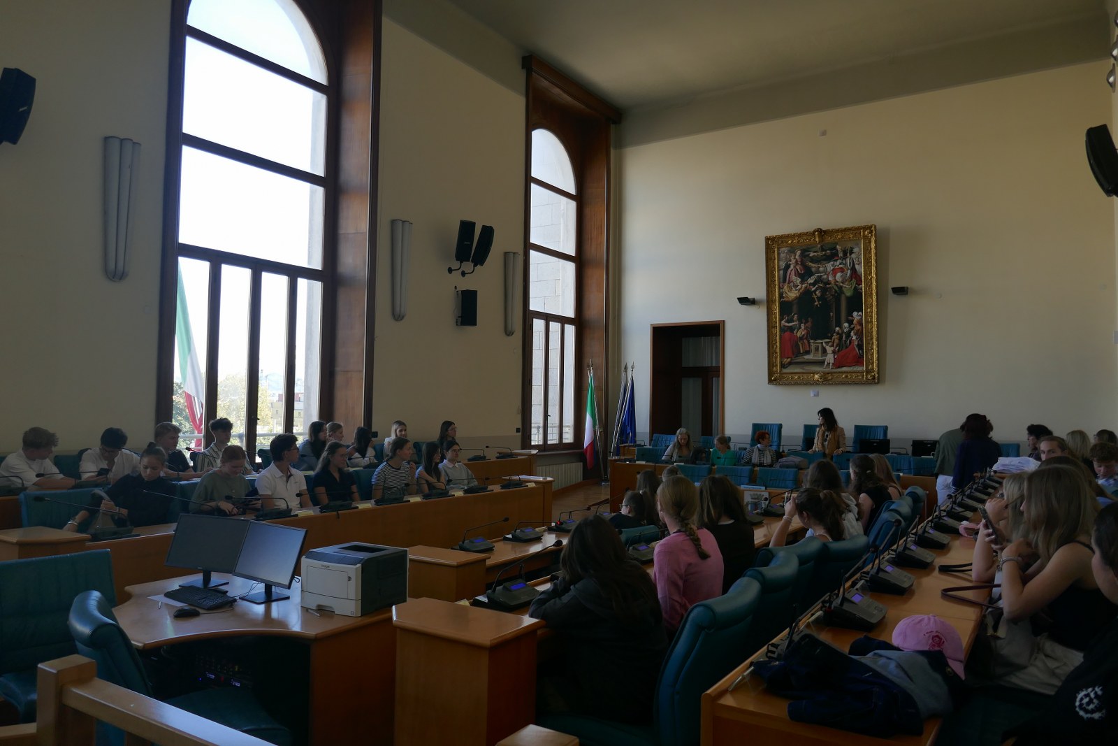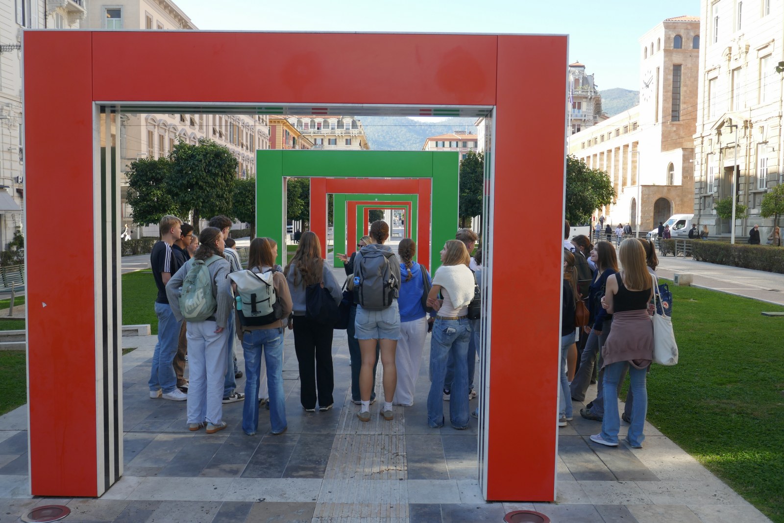 Am Montag haben wir die Schule mit einer Besichtigung erkundet und durften sogar den Blick vom Dach über das morgendliche La Spezia genießen. Anschließend lernten wir die Stadt mit ihrer abwechslungsreichen architektonischen Mischung aus Art Deco, Liberty-Stil und Futurismus, aber auch als Militär- und Hafenstadt bei einer Stadtführung kennen. Danach wurden wir im Rathaus vom Bürgermeister höchstpersönlich begrüßt. Den Nachmittag haben wir dann mit unseren Austauschpartnern am Strand verbracht und die spätsommerliche Sonne ausgenutzt.