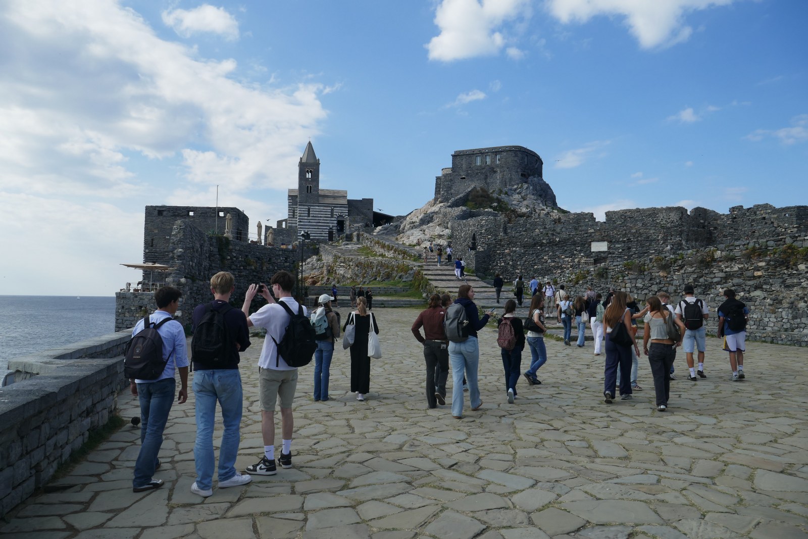 Am Mittwoch hatten wir am Vormittag ein Volleyballspiel mit einem Teil der italienischen Schüler, gegen die wir leider ganz knapp verloren haben. Danach fuhren wir mit der Fähre nach Portovenere, aber nur die deutschen Schüler. Wir lernten das kleine Städtchen mit seinen engen Gassen und bunten Häusern kennen und besuchten die Kirche San Pietro auf den Klippen von Portovenere. Das war ein großes Highlight, da der Ausblick auf die Küste der nahen Cinque Terre unfassbar toll war und wir wieder viel Freizeit hatten.
