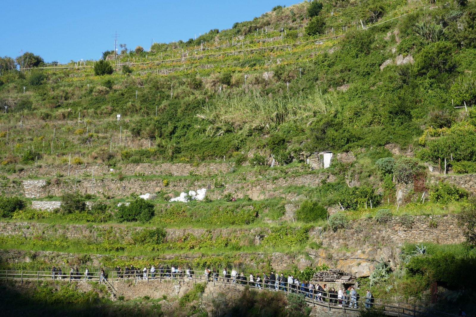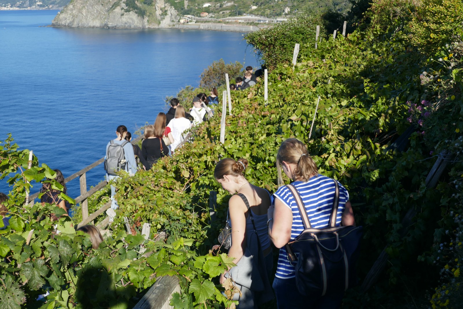 Den letzten Tag verbrachten wir in den Cinque Terre. Nach einer kleinen Wanderung durch die Weinberge oberhalb des malerischen Manarolas fuhren wir mit der Bahn weiter nach Monterosso. Dort hatten wir Zeit für ein ausgiebiges Mittagessen und der Großteil nutzte die freie Zeit für ein Sonnenbad am Strand. Wir hatten die ganze Woche über super Glück mit dem Wetter: Am Tag hatte es nie weniger als 22 °C im Schatten.
