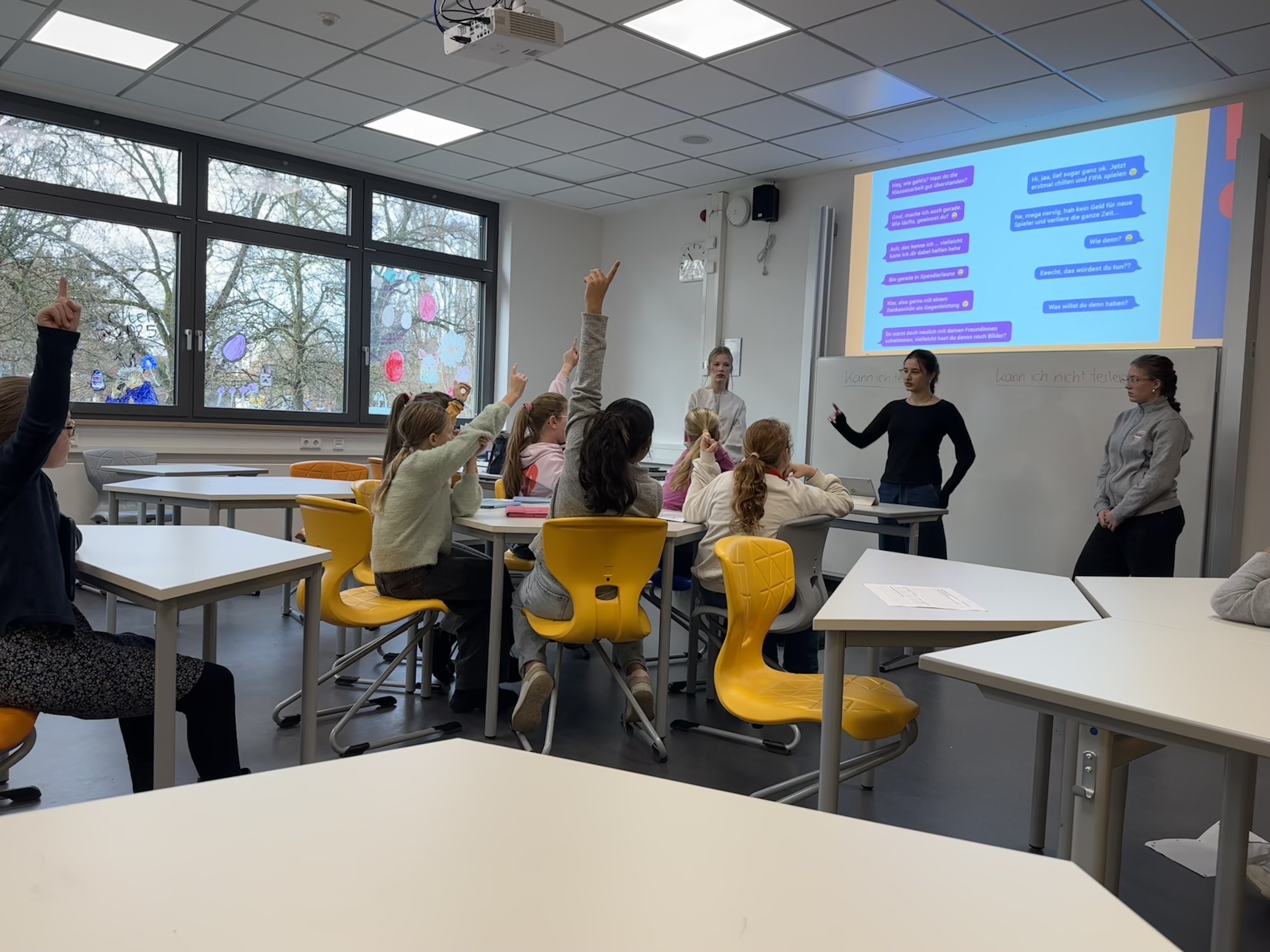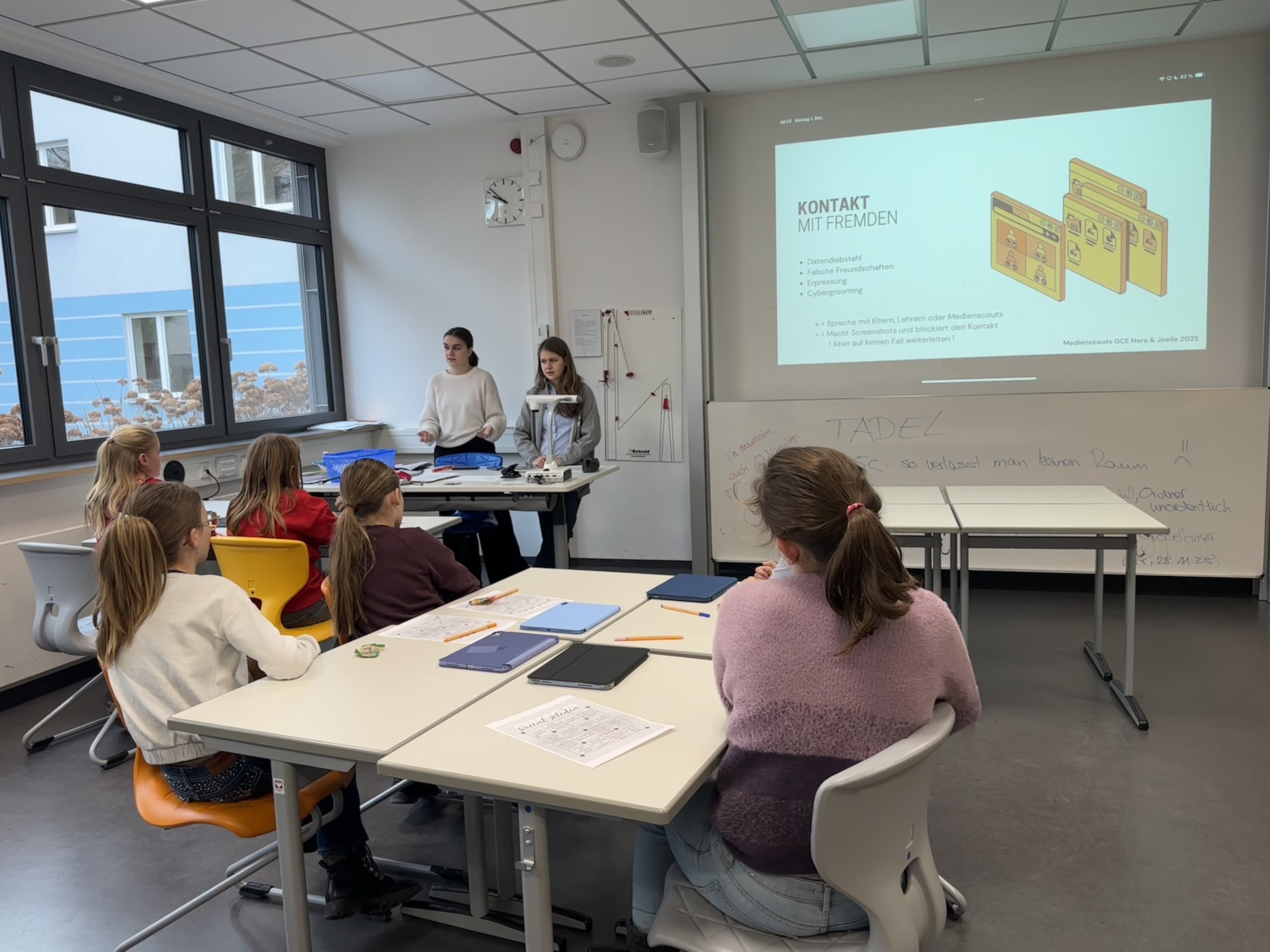 Unsere Medienscouts teilten ihr Wissen und auch ihre persönlichen Erfahrungen, um die 5. Klässler zum kritischen Denken sowie Hinterfragen medialer Inhalte zu ermutigen. Daher waren die Workshops nicht nur informativ, sondern auch unterhaltsam gestaltet, was die Schüler dazu anregte, aktiv mitzumachen und Fragen zu stellen. Die Rückmeldungen der Kinder waren durchweg positiv. Sie haben viel gelernt und wurden für die Herausforderungen der digitalen Welt sensibilisiert.