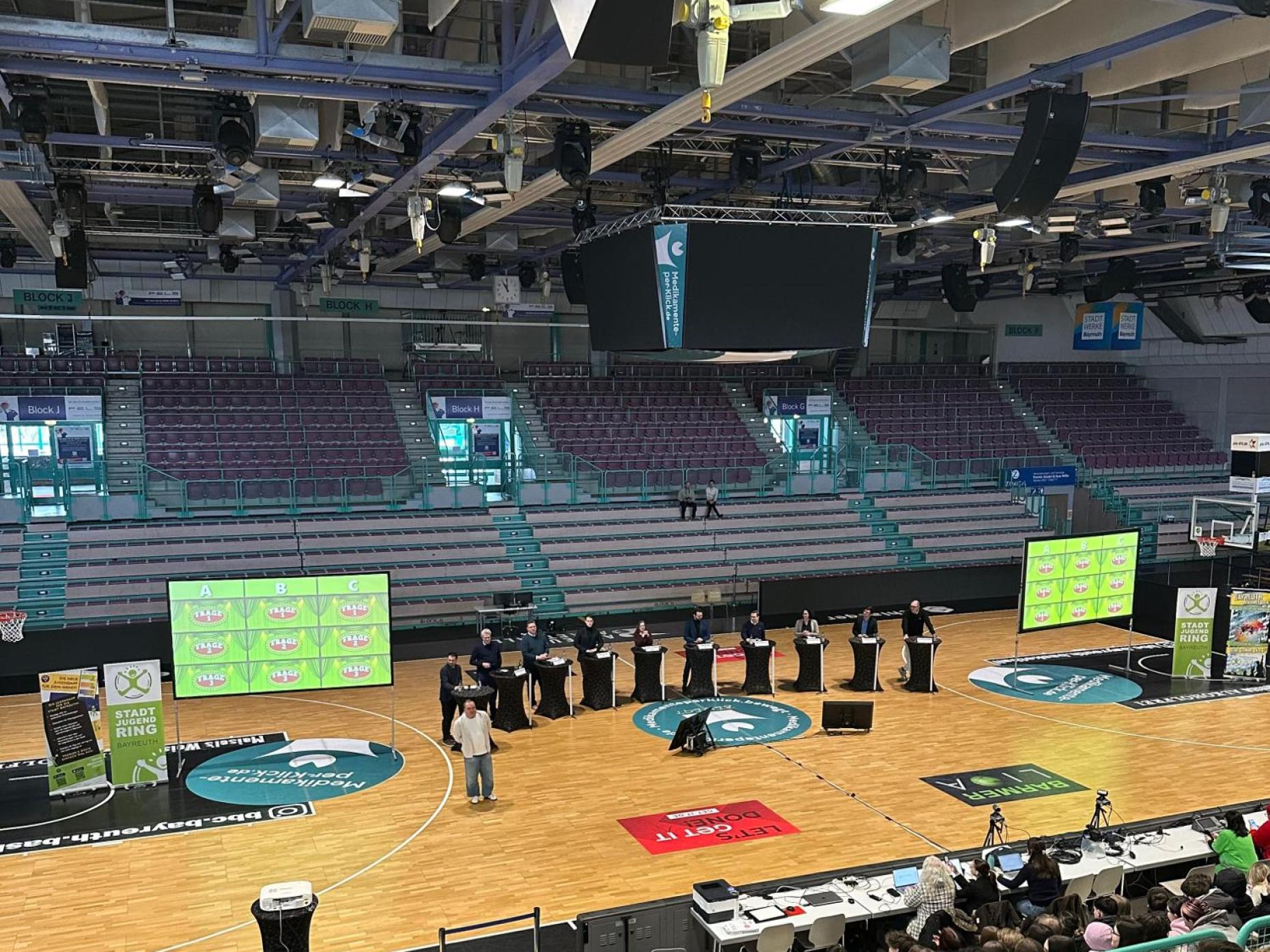 Im Mittelpunkt standen die Fragen der Schülerinnen und Schüler: In Quizduellen und einer abschließenden Fragerunde ging es unter anderem um Infrastruktur, Schulsanierungen, Angebote für junge Menschen und Familien sowie weitere Themen, die Bayreuth bewegen.