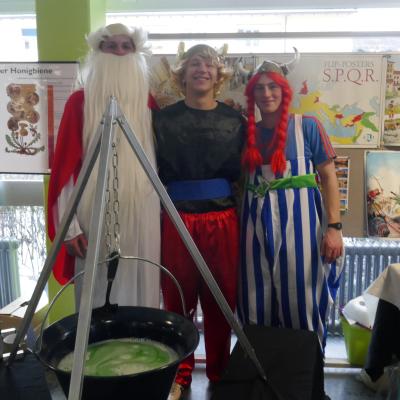 Trat man am Freitag, den 30. Januar 2026, durch die Pforten des GCE, bot sich einem ein seltsamer Anblick: Schülerinnen und Schüler in Toga und Tunica, ein Kessel voller Zaubertrank – ausgeschenkt von Asterix, Obelix und Miraculix persönlich – sowie ein Tisch voll mit Köstlichkeiten der römischen Küche. – Klar! Das konnte nur der traditionelle Römertag sein!
