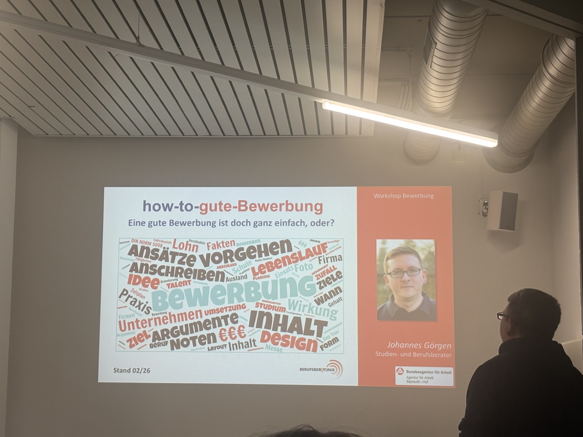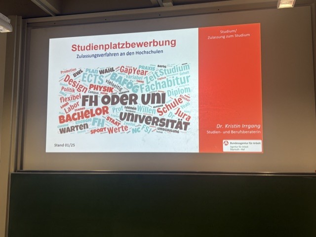 Der Workshop zu den "Grundlagen der Bewerbung" von Berufsberater Johannes Görgen (Agentur für Arbeit in Bayreuth) aktivierte das Vorwissen der Schülerinnen und Schüler rund um das Thema Bewerbung, das sie schon im Rahmen des Aufbaumoduls zur Beruflichen Orientierung in der Jahrgangsstufe 9 erlangen konnten. Ein besonderer Fokus lag dabei vor allem auf der individuellen Anpassung des Anschreibens.