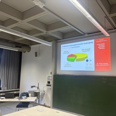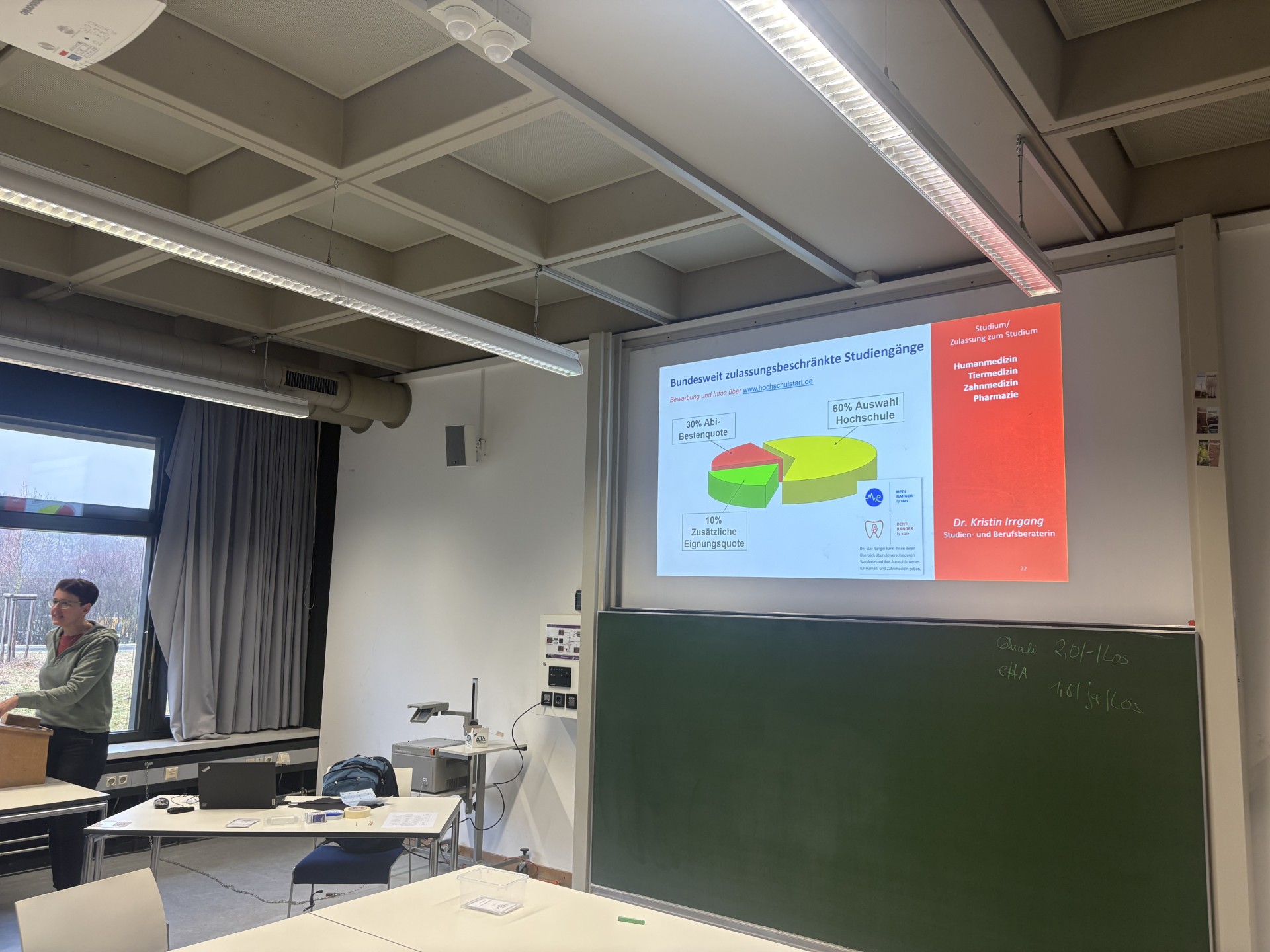 Kristin Irrgang, Berufsberaterin bei der Agentur für Arbeit in Bayreuth, thematisierte im Workshop "Zulassungsvoraussetzungen an Hochschulen" die verschiedenen Zulassungsvoraussetzungen für Hochschulen und Universitäten. Dabei gab es viele Informationen über die unterschiedlichen Studiengänge, Auswahlverfahren und Fristen. Beeindruckt waren die Jugendlichen vor allem von der Darstellung und des Rollenspiels zu den verschiedenen Möglichkeiten zur Verbesserung ihres Abiturschnitts.