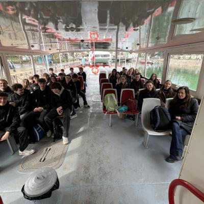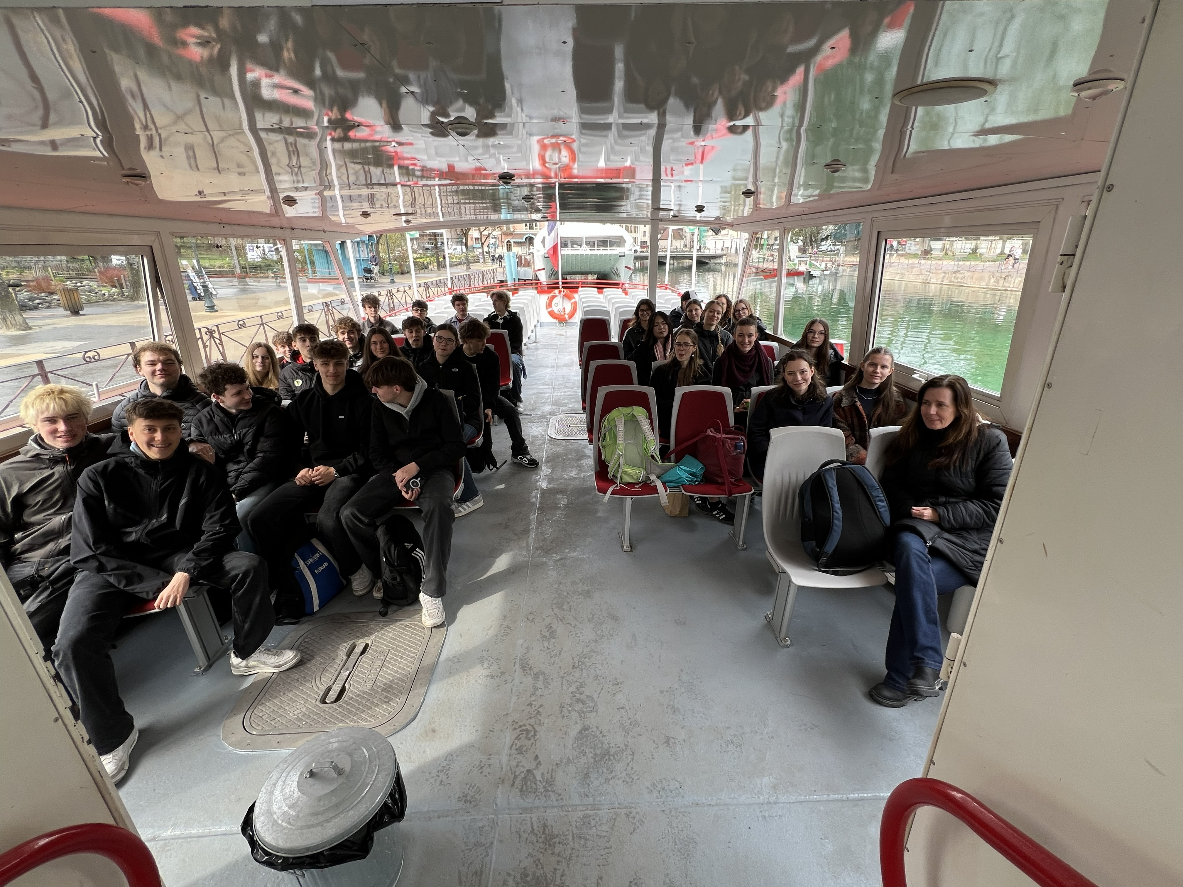 Am Dienstag durften wir am Unterricht teilnehmen. Dadurch bekamen wir einen direkten Einblick in den französischen Schulalltag und konnten Unterschiede und Gemeinsamkeiten zu unserem eigenen Unterricht entdecken. Am Nachmittag machten wir eine Bootsfahrt auf dem Annecy-See, von der aus wir die Stadt noch einmal aus einer ganz neuen Perspektive sahen. Anschließend nahmen wir an einer Stadtführung durch Annecy teil. Dabei lernten wir viel über die Geschichte der Stadt sowie über die Entwicklung der deutsch-französischen Beziehungen. Die Führung war sehr interaktiv gestaltet, sodass wir viel selbst entdecken konnten. Am Abend trafen sich alle Austauschschüler zu einem gemeinsamen Abendessen im Restaurant.